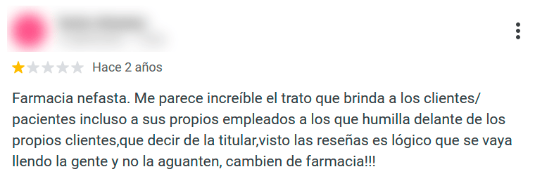 El problema no es tener malas valoraciones de personas que se quejan de que ciertos productos son caros o de que se les ha exigido receta para un Ventolín. El problema son las valoraciones que reflejan malas prácticas o mal ambiente de trabajo.